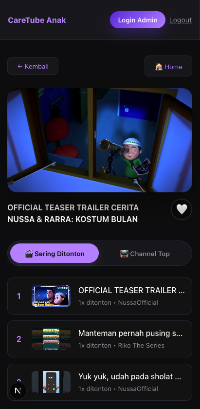 CareTube® secara cerdas mencoba memutar video dalam Bahasa Indonesia (jika tersedia dubbing-nya), sehingga anak dapat memahami konten edukatif dengan lebih baik.