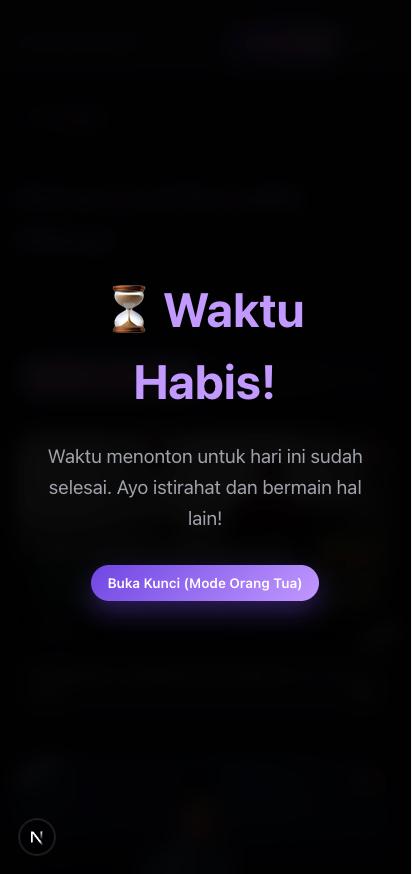 Jika Anda telah mengatur batas waktu di Mode Admin, aplikasi akan menampilkan pesan "Waktunya Istirahat" secara otomatis saat waktu habis, dan video akan berhenti diputar.