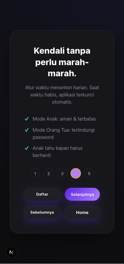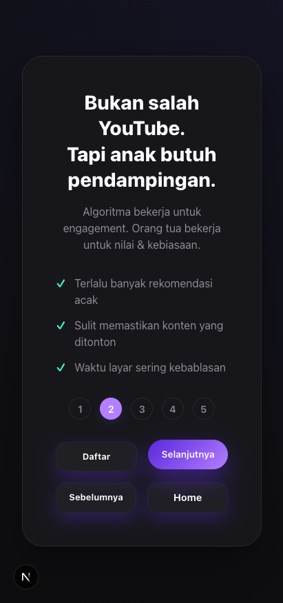 Kami memastikan anak Anda hanya menonton apa yang Anda izinkan. Tidak ada konten luar yang bisa menyusup tanpa persetujuan Anda.