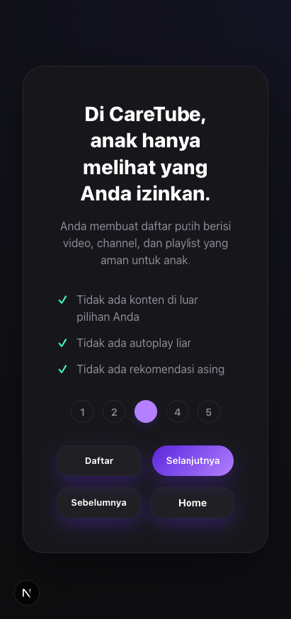 CareTube® adalah aplikasi yang dirancang khusus untuk memberikan lingkungan menonton YouTube yang aman dan terkendali bagi anak-anak.