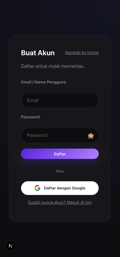- Email & Password: Masukkan email aktif dan kata sandi yang kuat.